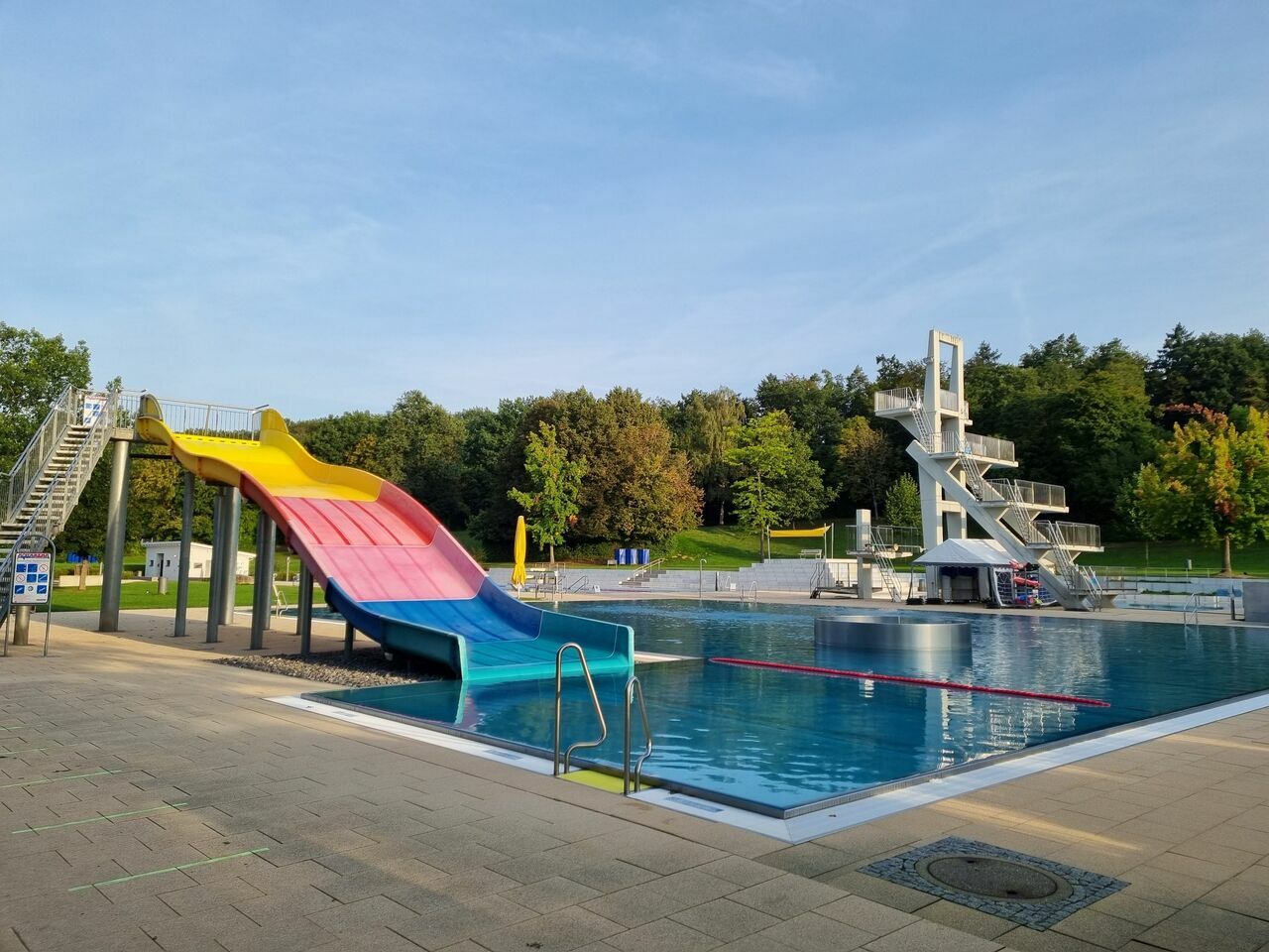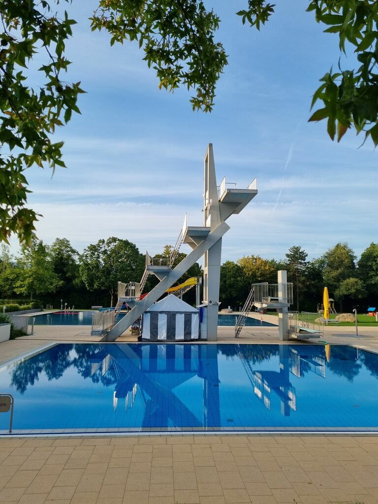 aktuelle Wassertemperatur: 22,3°C - Springerbecken mit Sprungturm - Sprunganlage mit 1 Meter, 3 Meter, 5 Meter, 7,50 Meter und 10 Meter Sprung